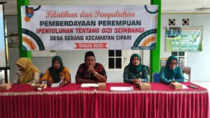 Pemerintah Desa Serang menyelenggarakan kegiatan penyuluhan pemberdayaan perempuan dengan tema “Penyuluhan Gizi Seimbang” pada hari Jumat, 17 Oktober 2025, bertempat di Pendopo Desa Serang. Kegiatan ini diikuti oleh para anggota PKK Desa Serang dan dihadiri oleh Kepala Desa Serang, Khasbullah, B.A. Narasumber dalam kegiatan ini adalah Ibu Nina Aryani Kusnadi, A.Md.Keb., yang merupakan praktisi kesehatan dan pemerhati gizi masyarakat.