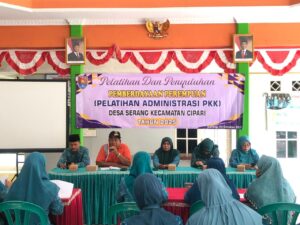 Pemerintah Desa Serang menyelenggarakan kegiatan pelatihan dan penyuluhan administrasi PKK yang bertempat di Balai Desa Serang, Kecamatan Cipari. Kegiatan ini dihadiri oleh Ketua Tim Penggerak PKK Kecamatan Cipari, Ibu Nina Aryani Kusnadi, A.Md.Keb, serta perwakilan dari Kecamatan Cipari yaitu Ibu Supiyah dan Ibu Arini. Kehadiran narasumber dan perwakilan kecamatan ini menjadi bentuk dukungan terhadap peningkatan kapasitas administrasi organisasi PKK di tingkat desa.